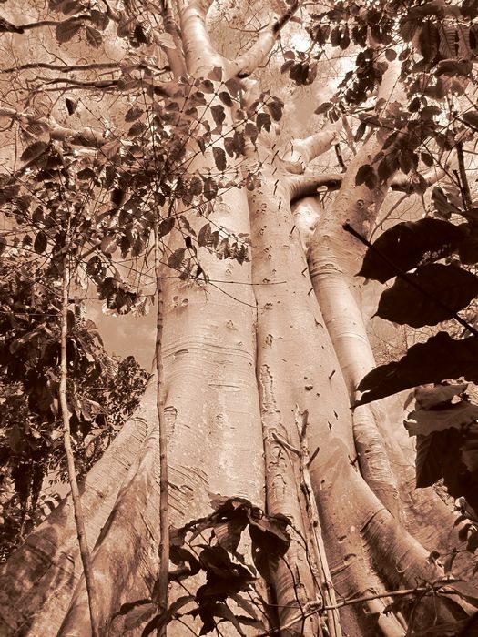Un tout petit sentier perdu permait de découvrir cet arbre remarquable, un fromager, camouflé au milieu de la forêt.
